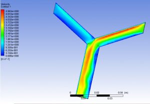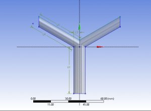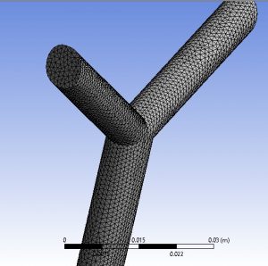 The geometry designed in design modular is shown in figure 1. The model consists of two inlets, one output and fluid domain with the diameter equal to 3mm.