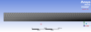 A solid component, the pipe has one face, four edges, and four vertices. Its length is 0.6 metres, and its breadth is 2.25 10-3 metres. The nanofluid’s starting velocity is 0.233 metres per second. ANSYS uses engineering data to specify material characteristics for real-time simulation. The length, viscosity (0.001098 kg/ms), density (1113.472 kg/m3), thermal conductivity (0.6926 W/m K), and outlet temperature of 293 K are all significant components of the pipe’s material composition. The shape and element size of the pipe have been carefully optimized to ensure realistic modelling. The coarse span angle centre, medium smoothing, and coarse relevance centre parameters are part of the mesh setup. As a consequence, a mesh geometry with 19513 nodes and 18000 components is produced. Figure 4 depicts the mesh setup of the pipe.