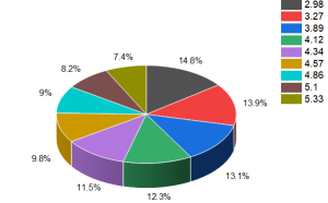 The circular graph shows that the black area represents the greatest velocity, which is 14.8% at the pipe’s entrance, and the green area represents the minimum velocity, which is 7.4% at the pipe’s outlet. This finding suggests that the pipe velocity increased gradually from the green to the black portion of the circular figure. As a result, the relation between temperature and velocity is inverse. Consult Figure 8 for a graphical representation of these temperature and velocity measurements.