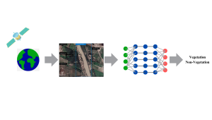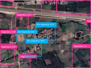 Fig. 1: Land use and land cover object detection based on Google Earth images. Images are labeled to identify the vegetation and non-vegetation classes.