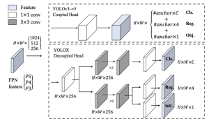 Fig. 4: The difference between the head of YOLOv3 and the proposed decoupled head has been illustrated here [13].