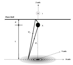 Figure I: The schematic diagram for photodetachment microscope of H– near a wall.