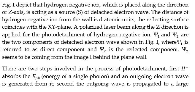 Following figure illustrates the process of photodetachment of hydrogen negative ion near a reflecting surface: