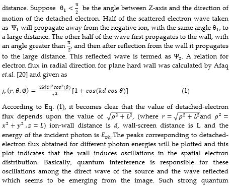 Abstract: The Photodetachment Microscopy experiment was first carried out in the presence of an electric field by Blondel et al in 1996 for Bromine negative ion. It measures the spatial distribution of ejected electrons on the detector screen which is a direct view of the spatial structure of the wave function of an atomic electron in the form of a ring pattern. From a semi-classical point of view, this ring pattern is formed because of the interference between two electron waves; one is direct while the other is reflected from an electric field. Following Blondel’s photodetachment microscopy experiment, a formula that displays the Newton Rings is derived using a theoretical imaging technique or hydrogen negative ion near a plane interface. The interface means an elastic plane in the vicinity of the source of photoelectrons. The direct and reflected electron waves in this formula generate quantum interference in the form of Newton Rings. It is found that the number of rings increases as we increase the photon energy of the laser light.