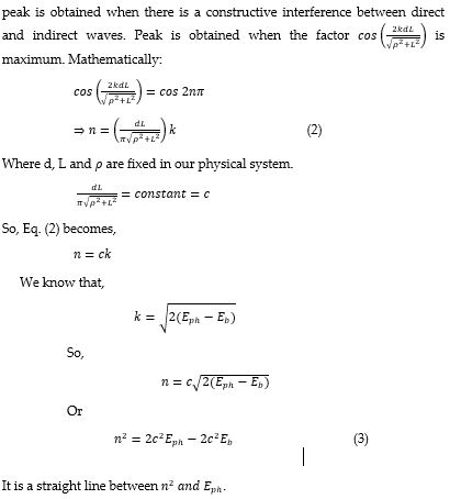 The electron affinity of hydrogen negative ion can be calculated by deriving a relation between number of fringes and photon energy. For this purpose, we use the Eq. (1) for the condition of bright fringe or peak. Bright fringe or