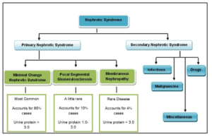 Exact nephrotic syndrome’s causes are still unknown but according to some studies it involves immune dysregulation and structural abnormalities of the podocytes that are inherited [12]. Early substantiation supported the disproportion of the T-helper responses [13] but the later studies show proofs of impaired T regulatory function, which also suggest variations in adaptive and innate immune responses [14]. In adults of European countries, nephrotic syndrome is caused by membranous nephropathy which affects the filter of kidney and reduces kidney’s function. In countries of Africa, nephrotic syndrome is reported to be caused because of focal segmental glomerulosclerosis [15].