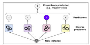 The Voting Classifier (Figure IV) combines conceptually different machine learning classifications to predict labels for classes by using the vote of the majority or an average predicted probability (soft vote) [20]. Such a classifier can be useful to offset the shortcomings of a set of models that perform similarly well. [14].